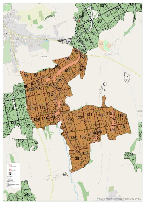 Obszar l . „Przy Zielonej Kuźni”- w terenie obszar ograniczony jest drogą z miejscowości Ogorzele do miejscowości Trzechel, drogą z miejscowości Trzechel do miejscowości Czermnica, drogą z miejscowości Czermnica do drogi do miejscowości Ogorzele.
